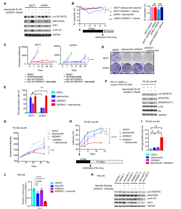 研究中還取得了另一項(xiàng)重要發(fā)現(xiàn):CDK2抑制劑展現(xiàn)出了克服p53缺失所引發(fā)的耐藥性的能力。它通過(guò)促進(jìn)細(xì)胞發(fā)生衰老轉(zhuǎn)化(即geroconversion),并誘導(dǎo)出衰老表型的顯現(xiàn),從而實(shí)現(xiàn)了對(duì)腫瘤生長(zhǎng)的長(zhǎng)期抑制效果。這一發(fā)現(xiàn)強(qiáng)烈暗示,聯(lián)合抑制CDK4/6和CDK2或許能夠成為一種針對(duì)TP53突變型HR+乳腺癌的有效治療手段,同時(shí)也有助于抑制藥物耐受性的發(fā)展,為這類(lèi)患者的治療提供了新的潛在策略。